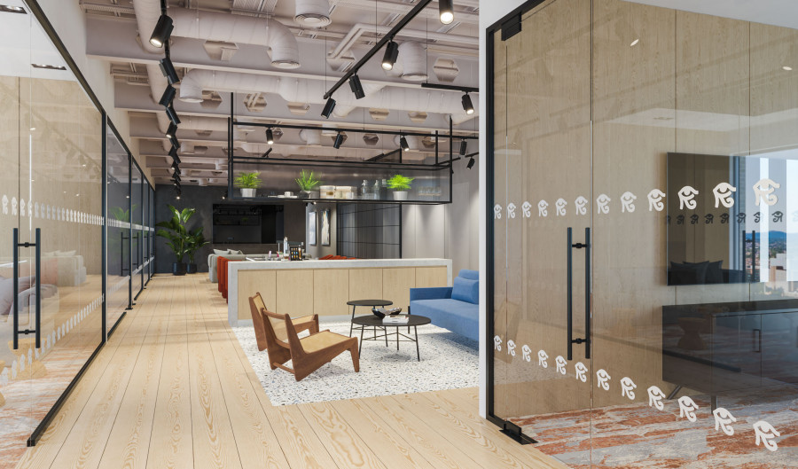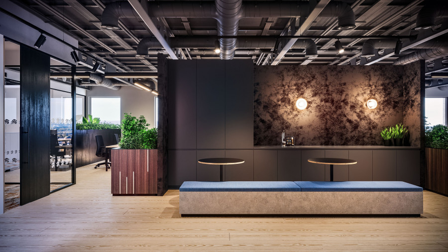 Inside the building, the visual language remains consistent: warm materials, subtle colour transitions, and layouts that support a mix of structured meeting rooms and informal lounge seating. Our imagery focuses on how these decisions behave under changing light, how textures read across different camera distances, and how circulation creates a steady flow between enclosed spaces and open collaboration areas. This level of visual testing is particularly valuable for specialists in office fit-out , workplace strategy, and commercial interior design, who rely on accurate representation of materials and proportions before build stages begin.