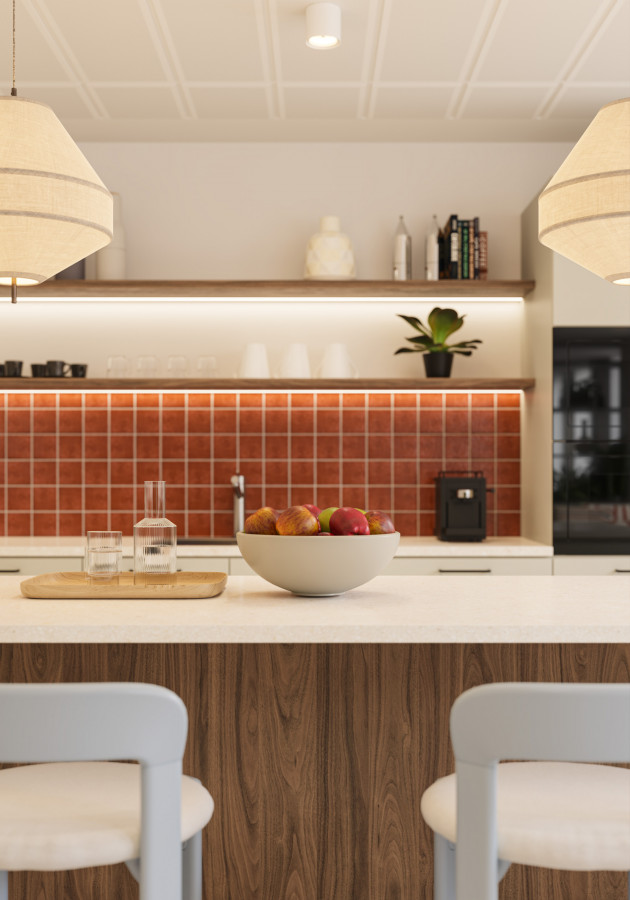 Our role was to interpret this relationship through CGI across multiple storytelling moments: wide shots that reveal the planning logic, close-ups that highlight texture and craftsmanship, and day–night transitions that show how the space adapts as the building moves from morning energy to evening stillness. Capturing the way light settles on timber, how mid-tones behave under changing conditions, and how the palette reads across both detailed views and full-room compositions was central to the brief.
